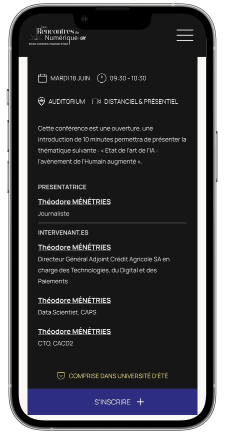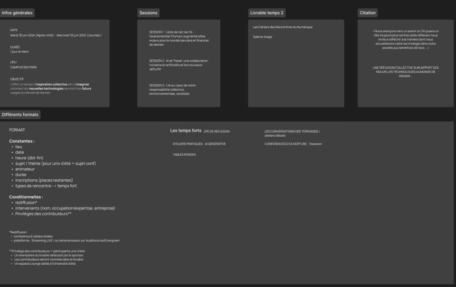 This project was requested by a client : The Crédit Agricole Group, to promote an event they wanted to launch in April of 2024. The ambition of the event was to spark dialog about the future & AI technology. The target audience was mainly professionnal and interested in exchanging about AI. The client wanted a clean and prestigious feel to the site